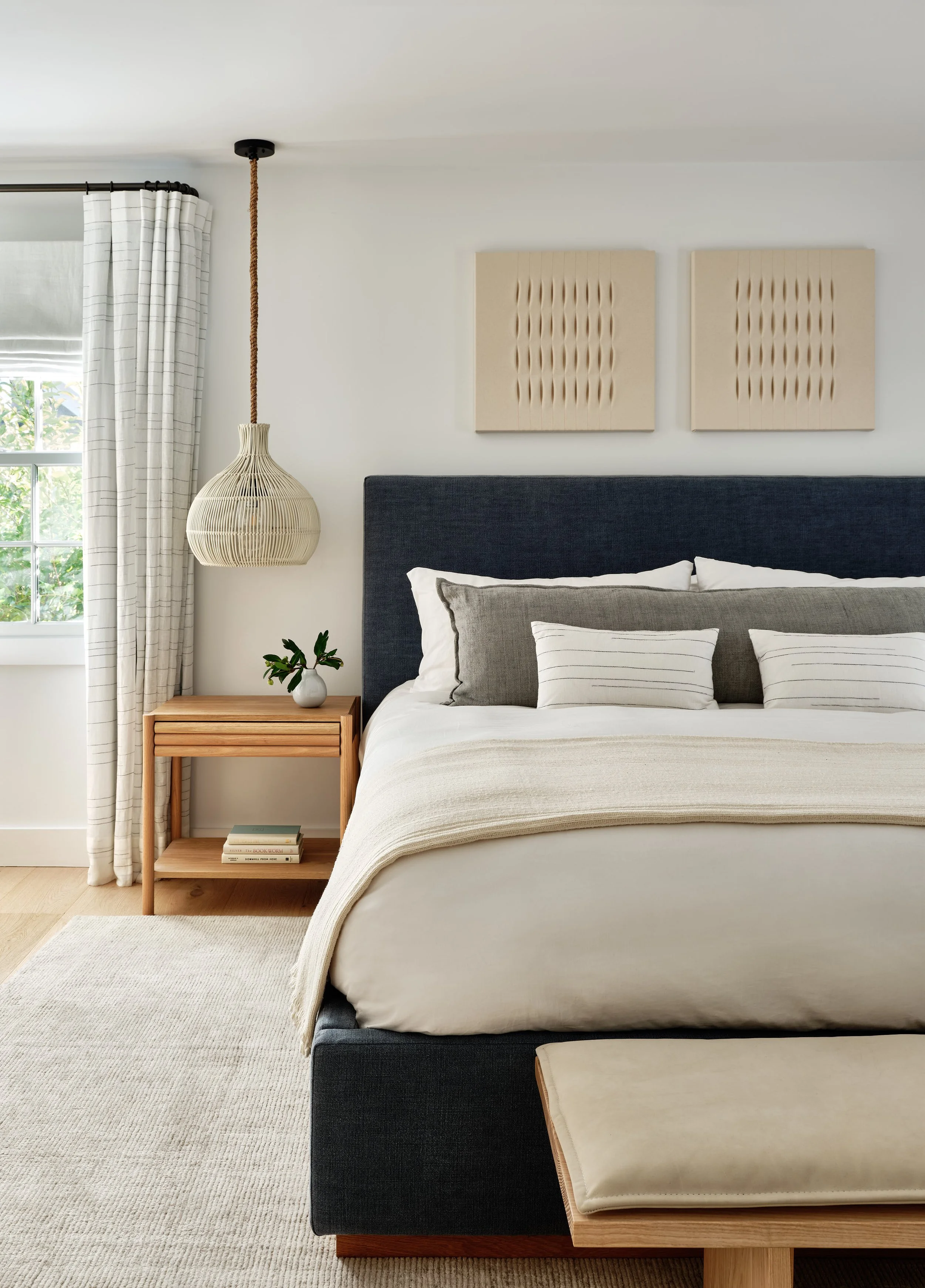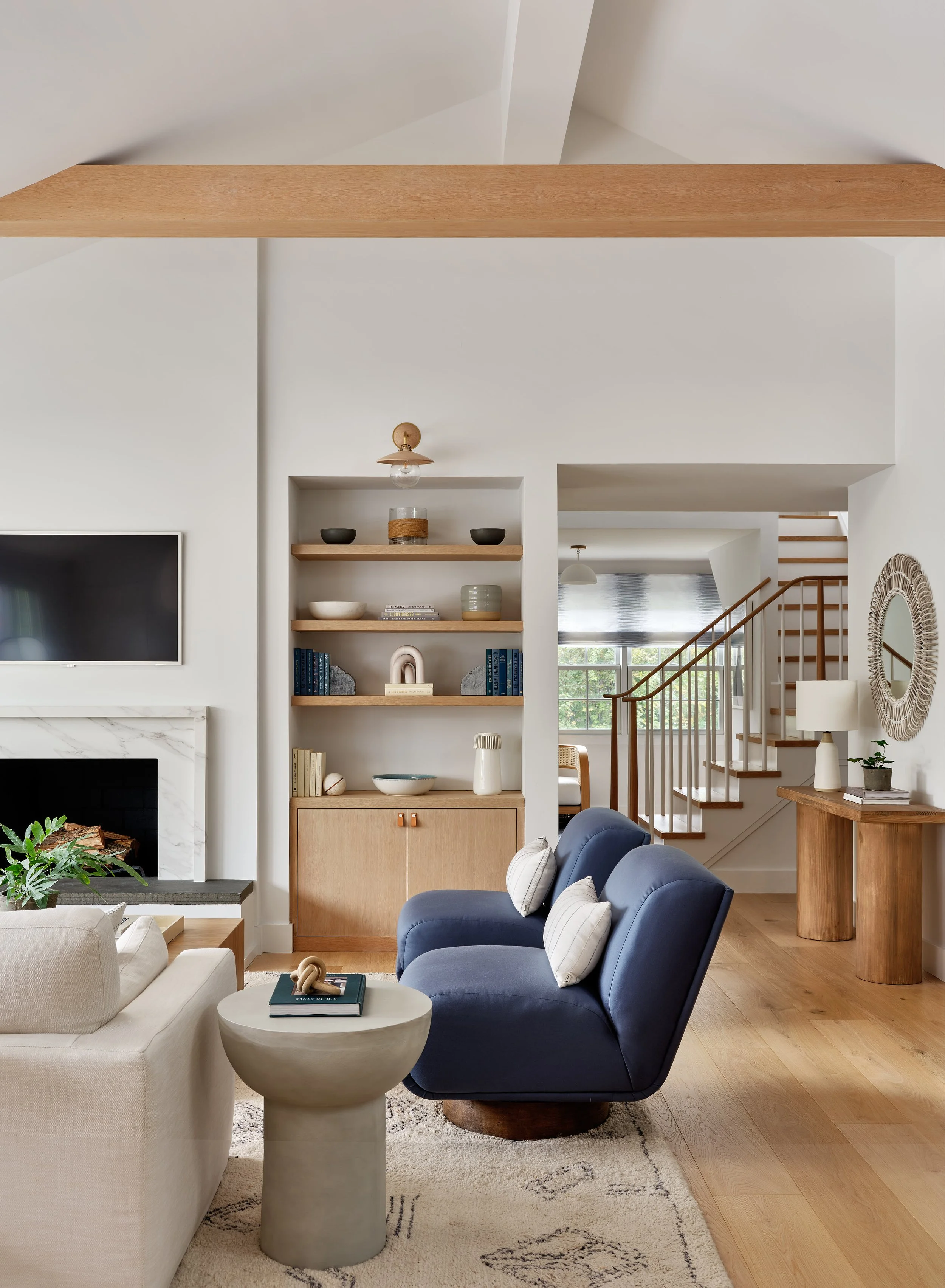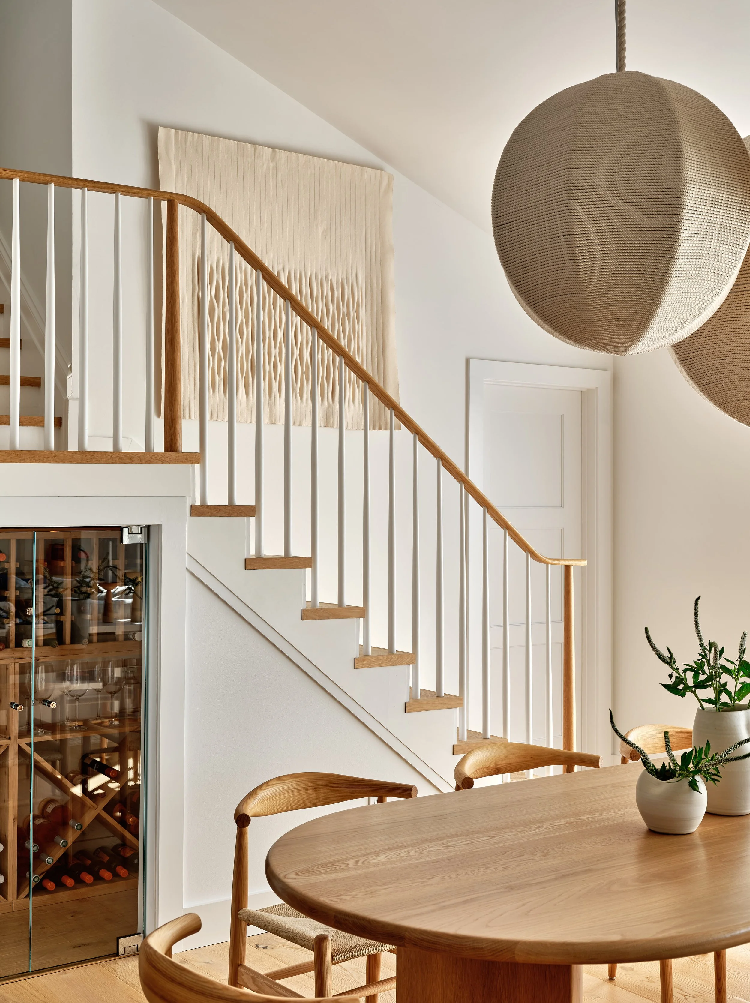 “We created a modern neutral beachy palette with warm wide plank white oak floors and millwork, creamy white walls, and natural textiles throughout. The end result was a sun drenched cohesive modern beach home for the family to enjoy year round.”