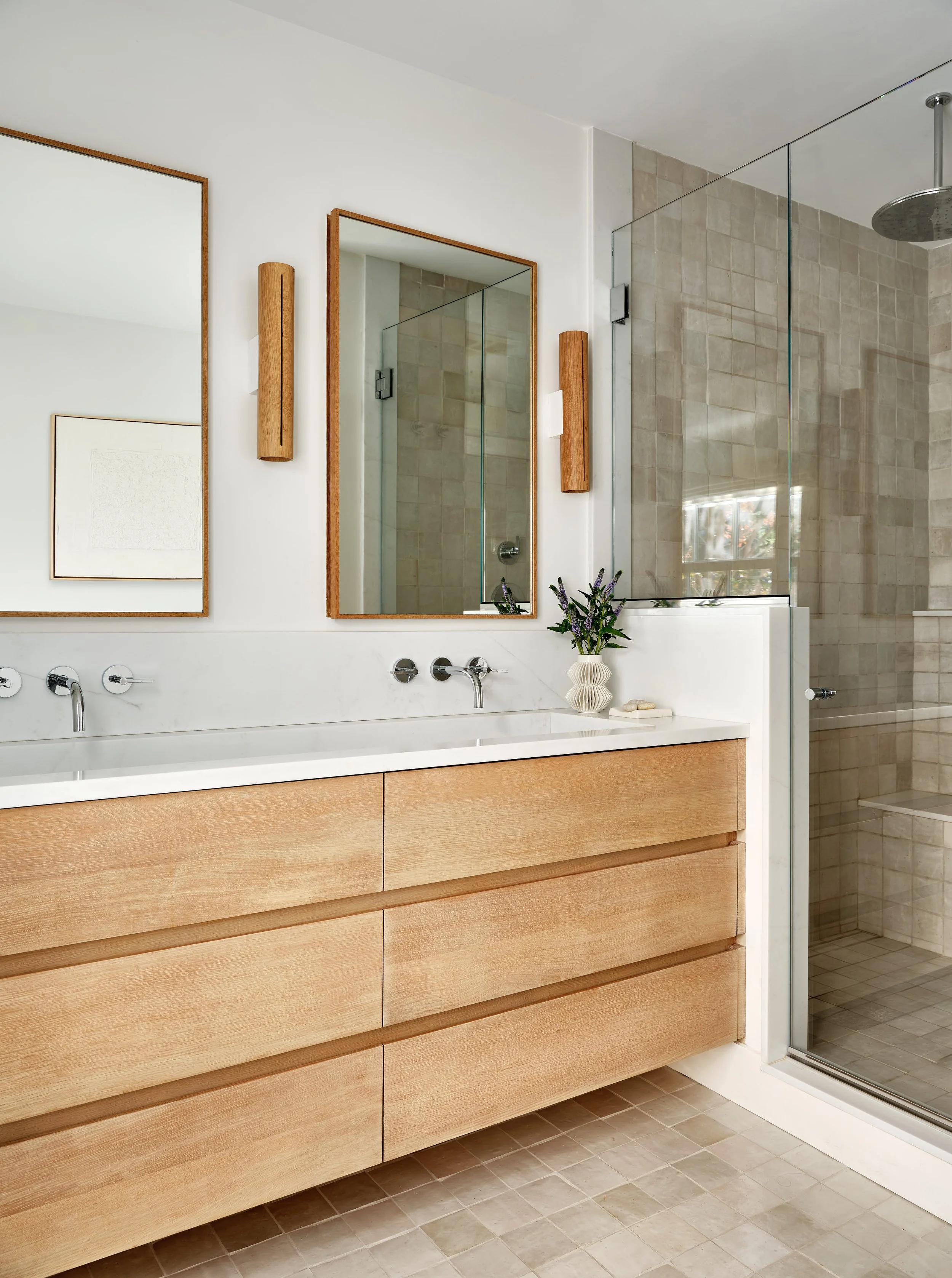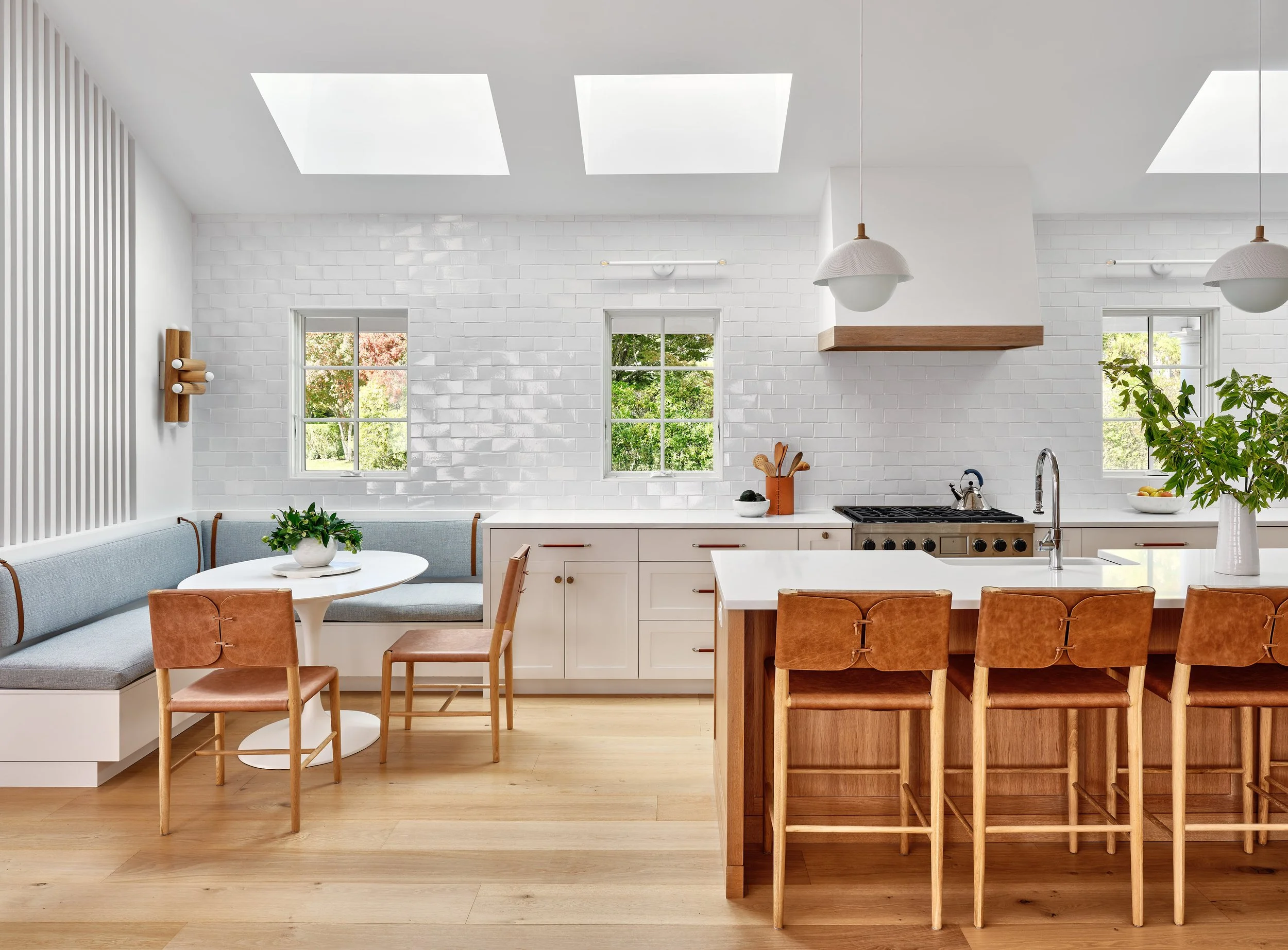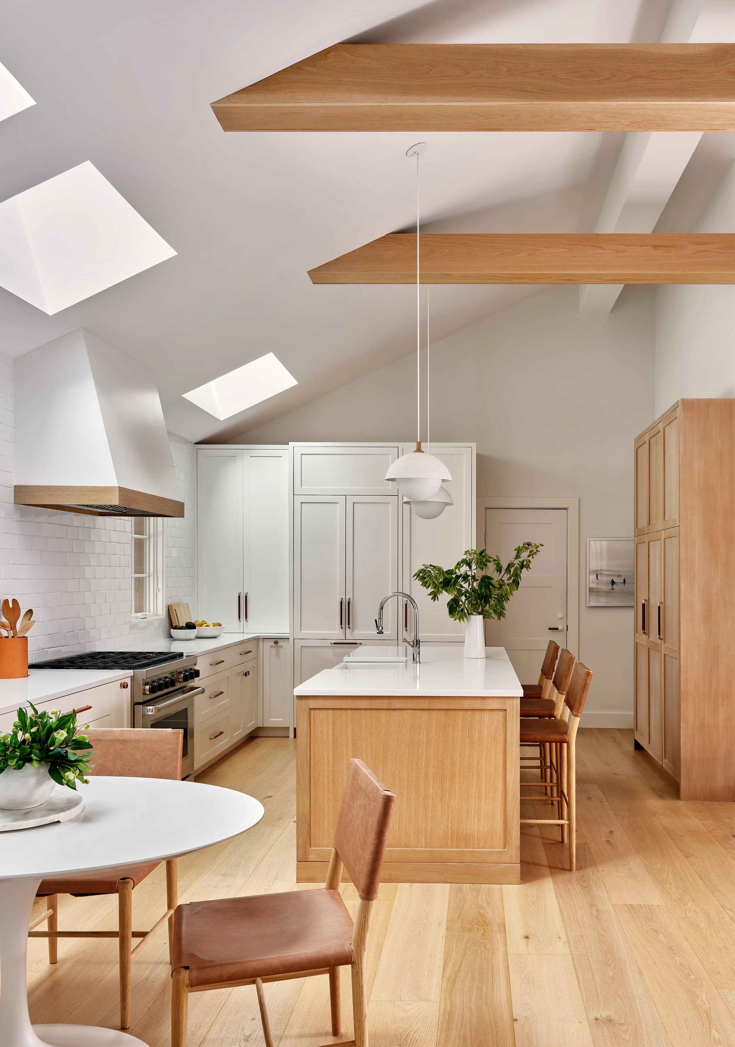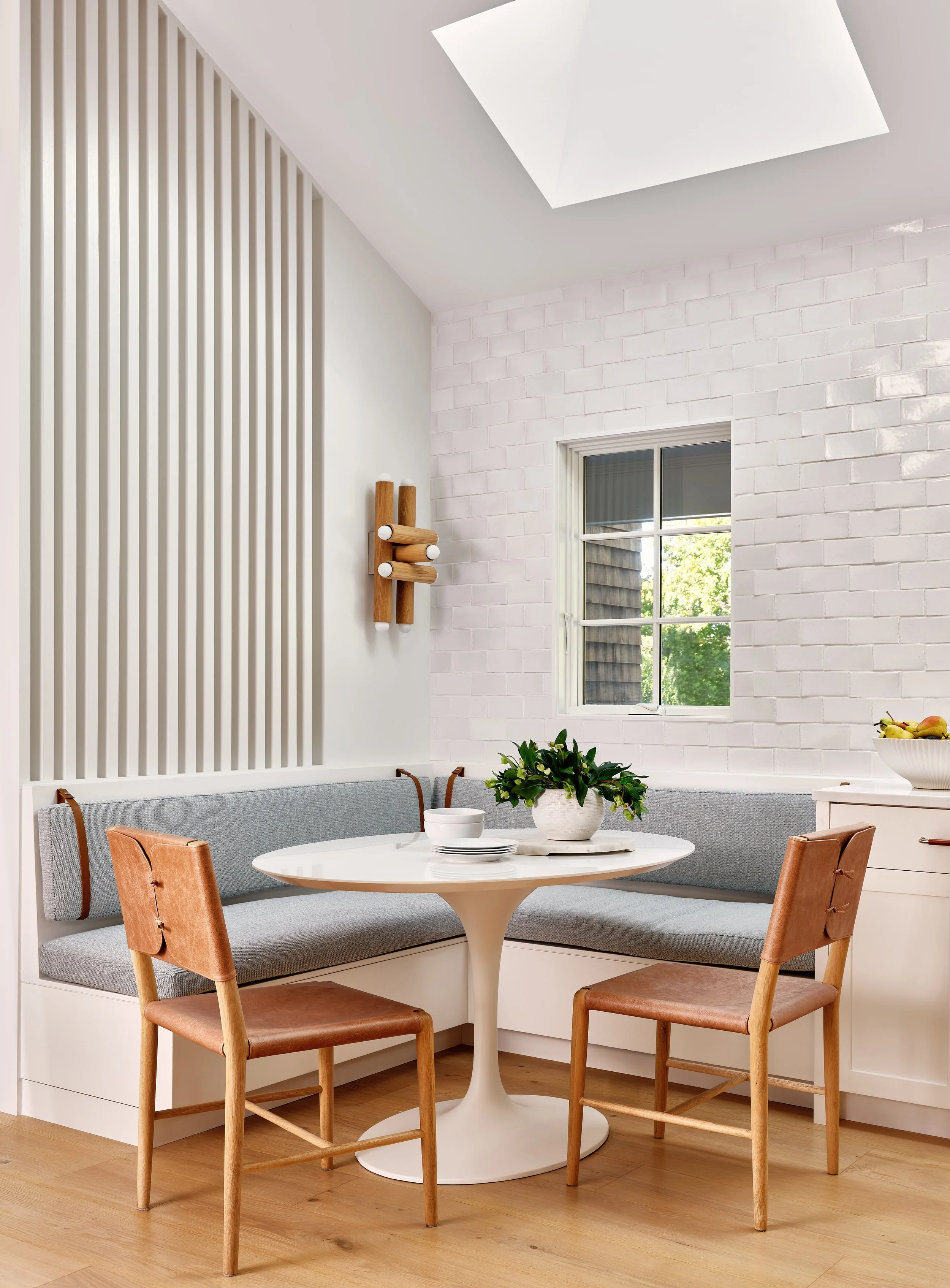 “We created a modern neutral beachy palette with warm wide plank white oak floors and millwork, creamy white walls, and natural textiles throughout. The end result was a sun drenched cohesive modern beach home for the family to enjoy year round.”